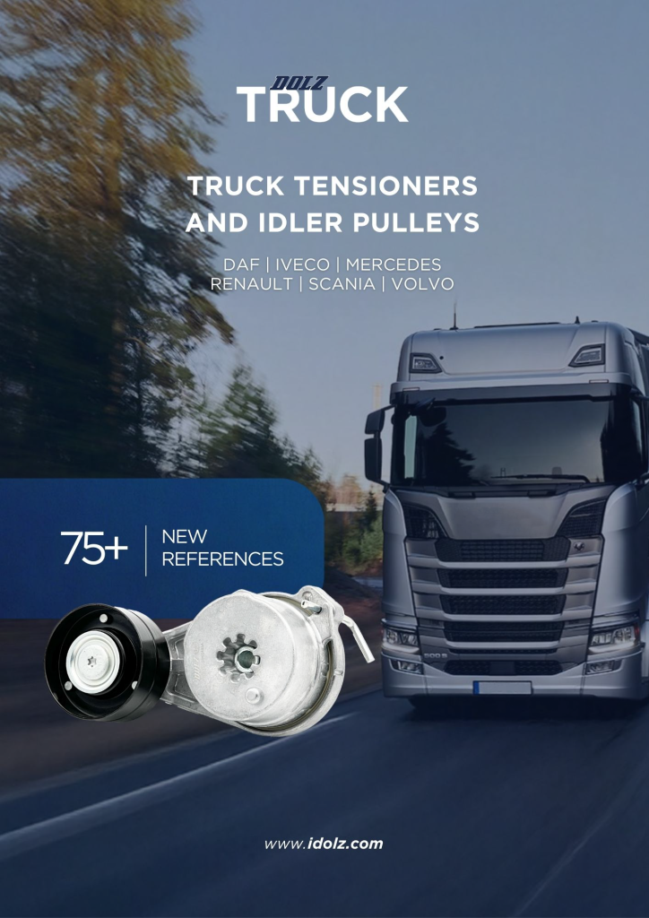 Dolz, a leading manufacturer of automotive components, strengthens its heavy-duty vehicle portfolio with more than 75 new Truck Tensioner and idler references. Designed to withstand the most demanding conditions in transport, these tensioners ensure maximum reliability, durability, and consistent performance for professional operators and the aftermarket.