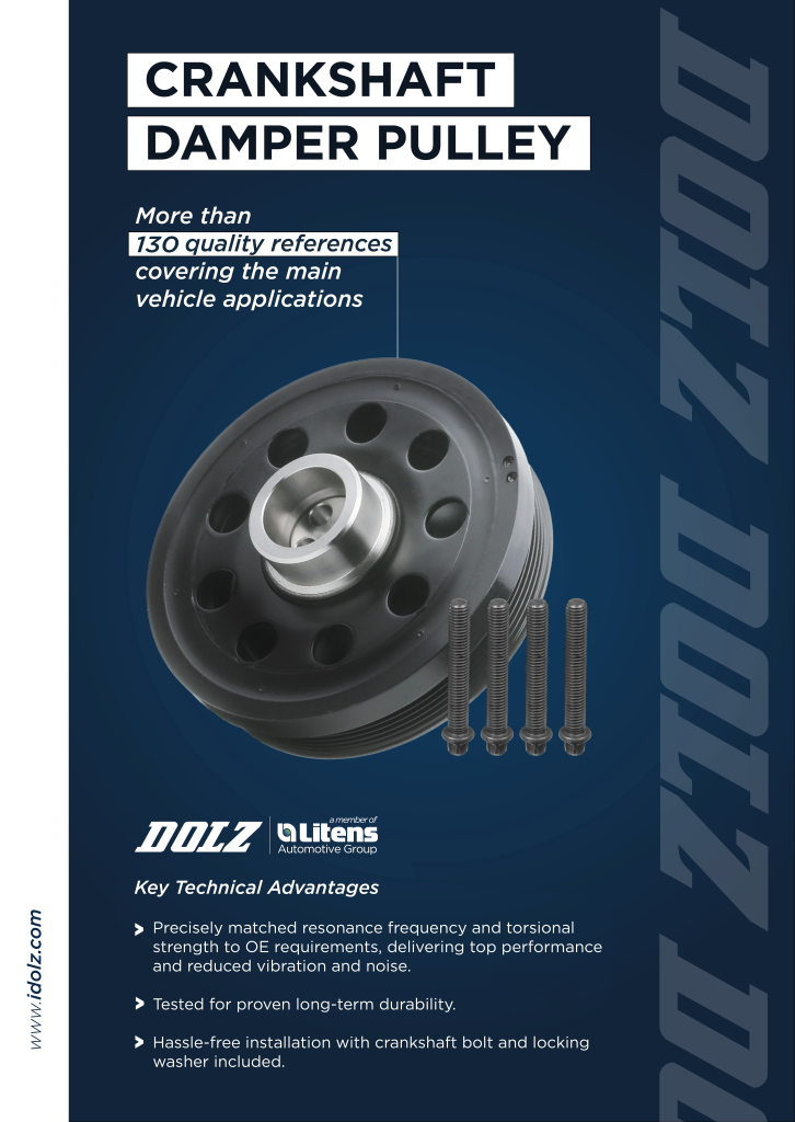 “With the addition of Crankshaft Damper Pulleys, we reinforce our goal of offering an increasingly comprehensive range of drive solutions for aftermarket professionals,” says Andrea Taverna, Dolz Commercial Director. “Our expertise, combined with Litens technology, enables us to guarantee products of the highest quality and performance.”